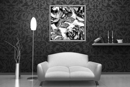 Abstract flower, All, Black & white wall art, Floral wall art, Flower wall art, Painting, Square