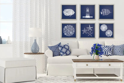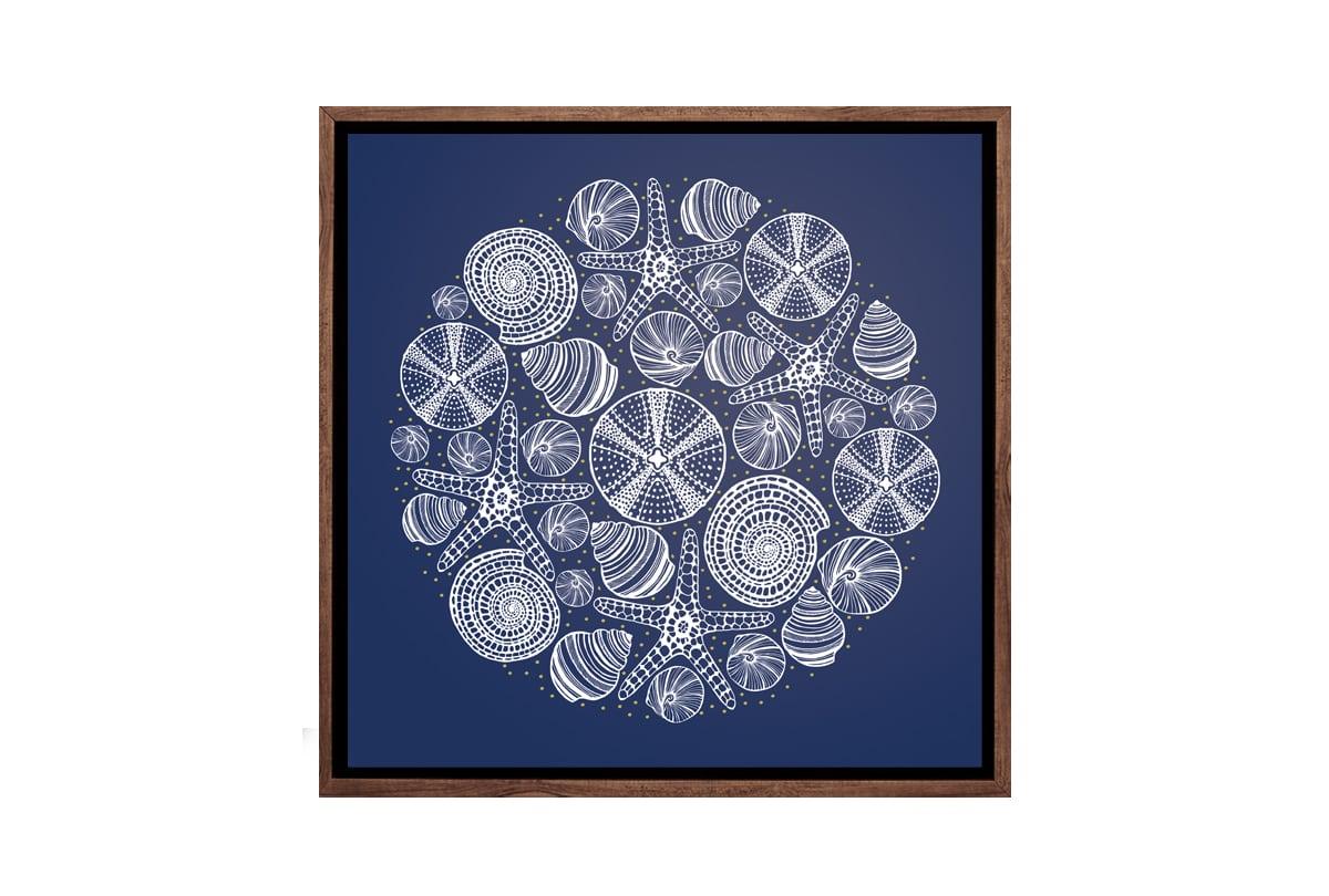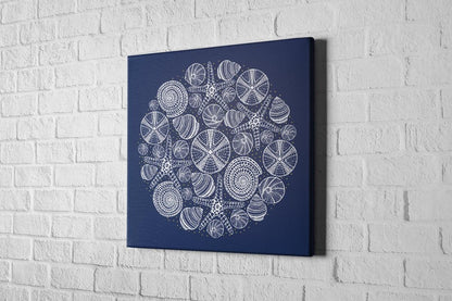 Shells Star Fish White on Navy | Canvas Wall Art Print
