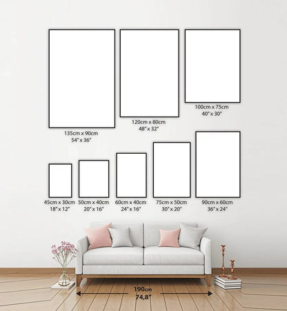 Canvas prints come stretched around a high quality, kiln-dried frame with a depth of 3cm and are ready to hang upon delivery. Each of our high-quality, durable frames include a raised lip around the perimeter, keeping indentations from forming on the canvas.